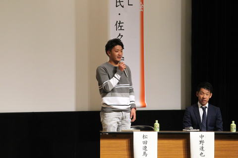 2学期の締めくくりとなる講演となりました。講演いただいた中野達也さん、松田遼馬選手、インタビュアーの佐々野宏美さん、お忙しい中ありがとうございました。