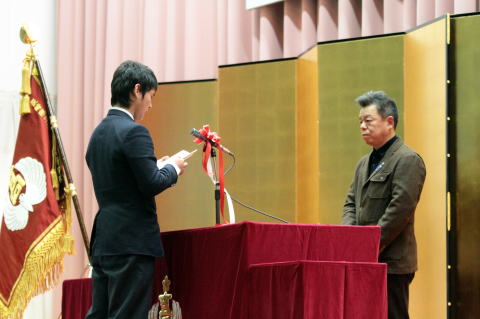同窓会入会記念品受領者代表(桑戸 一成くん)