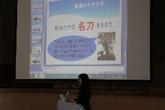 最初に自己紹介を兼ねてクリエイティブディレクターという仕事について説明され、先生が担当された「県民だより」のキラッとインタビューに登場された方をもとに、いろんな輝いている生き方を紹介されました。