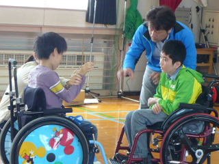 | 本校プレイルームにて、本校卒業生である、木谷隆行さんによる進路講演会及びボッチャ体験活動が行われました。木谷さんは現在仕事をされながら、ボッチャの日本代表としてパラリンピックなどの世界の舞台で活躍されており、講演会では、学生時代の思い出や社会人になってから苦労されたことなどについて話がありました。ボッチャのデモンストレーションでは、本校生徒が代表として対決し、大変盛り上がりました。 ボッチャ体験活動では、児童生徒みんなで活動を楽しむことができました。 ![]() |