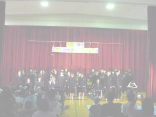 | 本校プレイルームで学習発表会が行われました。各学年、各グループから、詩、歌、劇、調べ学習などが発表され、最後には生徒・児童、教職員全員で「明日という日が」「クスノキ」を合唱しました。 |