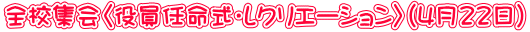 | 本校プレイルームで生徒会長、生徒副会長、書記の任命式が行われ、任命された生徒が役員に対する抱負を述べました。任命式後は全児童生徒でジェスチャーゲームなどのレクリエーションを行いました。 |