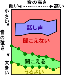 下の図に、これまでの補聴器《アナログ補聴器》とデジタル補聴器でのきこえ方の違いを表してみました。