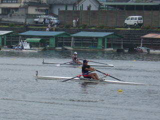 ←塚原君はラフ・コンディションの影響か予選の途中で腰を故障してしまい、痛みに苦しみました。決勝ではスタートを慎重に決めて、リードを奪い、2位の選手を見ながら漕ぎました。しかしゴール付近では追い上げられ2秒差で何とかゴールに飛び込みました。