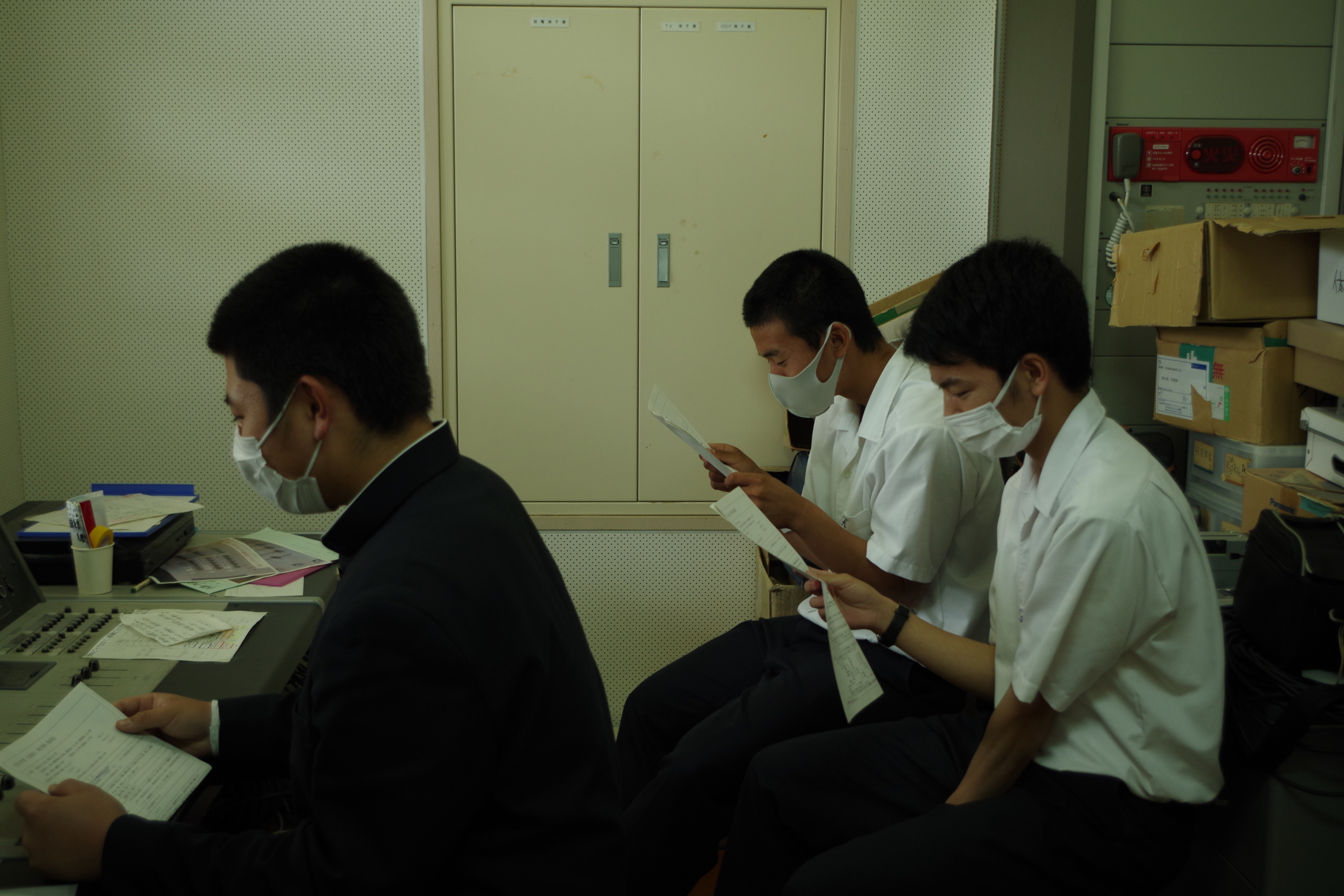 | 5月25日(火) 生徒総会 5月25日(火)の7校時LHRの時間に、令和3年度の生徒総会が行われました。生徒は各 教室におり、生徒会役員や各種委員が放送室から放送による説明を行いました。生徒会標語 や各クラスの目標等を報告したり、各種委員会からの年間活動や今年度の目標等が報告され ました。また、審議事項として令和2年度の決算・監査報告や令和3年度の生徒会年間活動計 画・生徒会予算等審議されました。 |