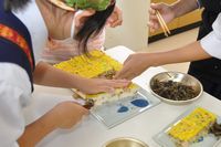 会では大村市食生活改善推進員のみなさんに指導していただきながら、郷土料理「大村寿司」を手際よく作ることができました。