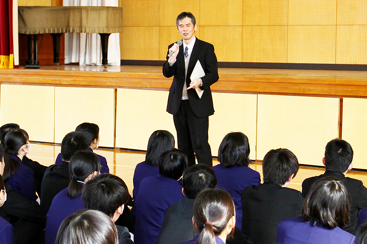 | ●3年生の各クラスへ「御守り」が渡される | ●進路主任による諸注意 | |||