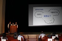 | ◎学校説明会 8月5日(火)、諫早文化会館にて学校説明会を開催しました。在校生による学校紹介や校長及び職員による挨拶・特色等の説明&クイズ、そして吹奏楽部による演奏が行われました。在校生のお手伝いもあり、無事開催することができました。多くの中学生・保護者の方、ご来場ありがとうございました。 次は10月4日(土)にオープンスクールを開催します。たくさんのご参加お待ちしています! |