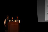 ◎県高文連文化講演会 1月19日(金)の午後、長崎県高等学校文化連盟の文化講演会が諫早文化会館で行われました。今回の講演会は「弱虫ペダル」などの作者で本校卒業生の渡辺航様を講師にお招きし、県内の各校の生徒が招待されました。講演では、夢を持つことの大切さや、渡辺様の作品作りの背景などについてのお話がありました。最後に本校代表生徒がお礼の言葉を述べ、渡辺様に花束を贈呈しました。 |