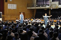 | ◎有喜中学校演奏会 11月27日、本校吹奏楽部が有喜中学校へ伺い、演奏を披露してきました。吹奏楽部も有喜中学校の生徒さんも最初は緊張した面持ちでしたが、次第に和やかな雰囲気で演奏会になりました。最後は西陵高校吹奏楽部の十八番「You can’t stop the beat」のセンキューの掛け声で大盛り上がりでした。有喜中学校の先生の中には、西陵高校吹奏楽部出身の先生もいらっしゃり、当時を思い出し、懐かしさを感じていただけたようです。有喜中学校の皆さんありがとうございました。 |