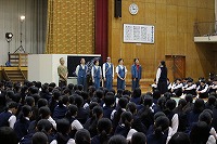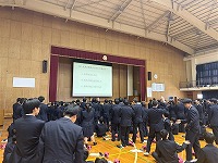 ◎卒業式予行・各種表彰式・同窓会入会式 3年生は2月29日(木)の朝から卒業式の予行を行いました。予行では呼名や卒業証書を受け取る手順、一連の動作の流れなどを確認しました。午後には1・2年生も参加して各種表彰式を行い、県教育委員会や県高体連、県高文連、諫早市などからの表彰状が校長先生から各生徒に手渡されました。続いて皆勤賞・精勤賞に対しても表彰が行われ、代表生徒が賞状を受け取りました。また、卒業生からの記念品贈呈式があり、テント一張が寄贈されました。さらに、全体での予行の後に同窓会入会式があり、副会長様から激励の言葉をいただきました。 |