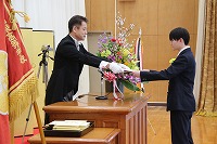 ◎県民表彰 11月23日(木)に県民表彰式が開催され、夏に鹿児島県で行われた全国高等学校総合文化祭において2部門で受賞を果たした本校吹奏楽部に特別賞が授与されました。県議会議場で行われた式典では、大石知事から吹奏楽部副部長に表彰状が直接手渡されました。 ![]() |