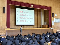 | 1月8日(水)に令和7年初めの全校集会(校長先生のお話や各種表彰伝達式等)が行われました。 (※本日の壮行式の様子は1月8日(水)18:00~のNIB、KTNのニュース番組で放送されます。) ![]() ![]() ![]() |