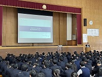 ◎県内就職に関する講演会 2月8日(木)の午後、2年生を対象に長崎県未来人材課の県内就職に関する講演会を行いました。担当の方からは、高校生がもっと本県の魅力を知り、将来的には本県に戻って、地域を支える人材になってほしいとのお話がありました。 |
