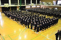 1月16日(木)のLHRの時間、体育館で3年生のセンター試験出陣式を行いました。式では教頭先生からの激励の後、転勤した先生方からのビデオメッセージが上映されました。続いて、学年主任の先生からの言葉や代表生徒の決意表明、進路指導部からの受験に際しての注意事項確認の後、全員のかけ声で受験本番に向けての意識を高めました。